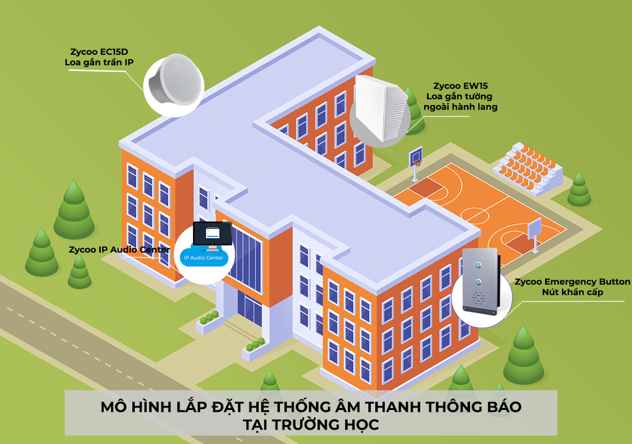 Giải pháp loa IP Zycoo không chỉ giúp phát thông báo thường ngày (giờ vào học, ra chơi, nội quy, nhạc nền), mà còn là hệ thống an toàn khẩn cấp đáng tin cậy, giúp các trường học đảm bảo an ninh, phản ứng nhanh và bảo vệ học sinh tối đa.